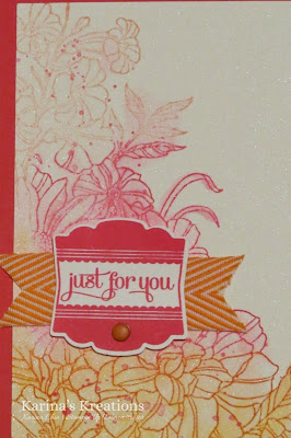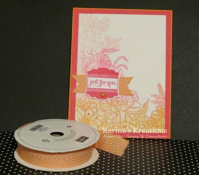 My card uses three retiring items. The Label Love stamp set, the matching Artisan Label punch and Pumpkin Pie Chevron Ribbon.