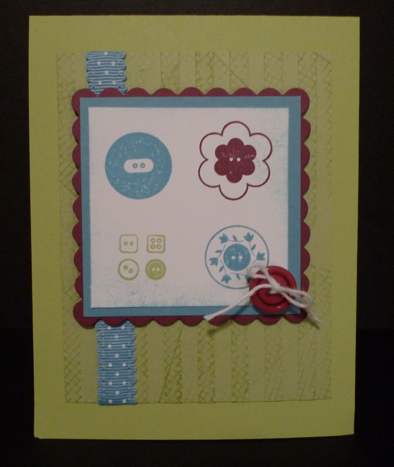 I used the Button Button stamp set that’s on sale for $19.17 wood mount or $13.77 clear mount.