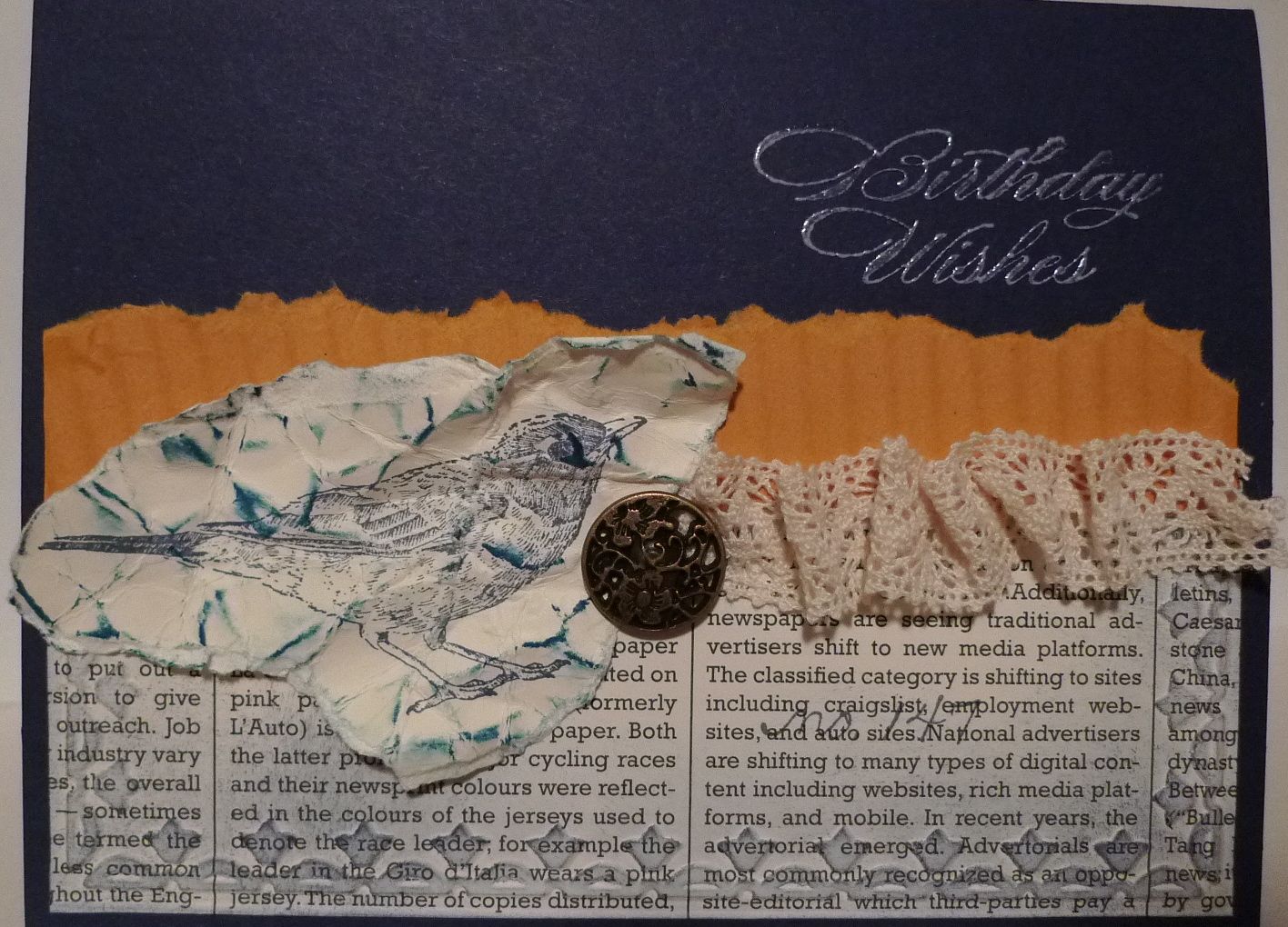The bird was antiqued using the Distressing Essentials kit with the Navy ink.