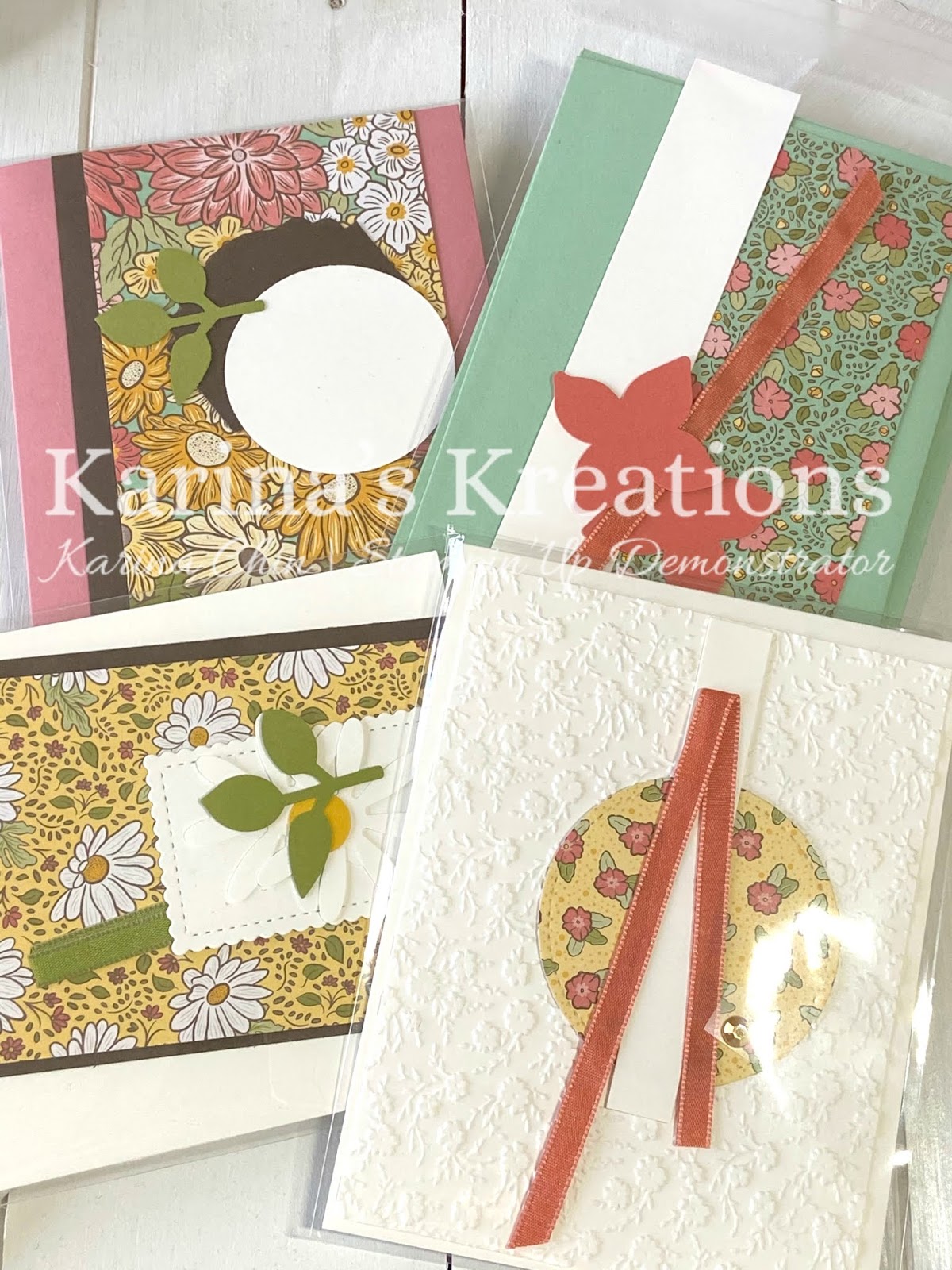 - This class includes the supplies and instructions to make the above 4 cards, the Ornate Thanks Stamp set and a package of Gilded Gems for $42.