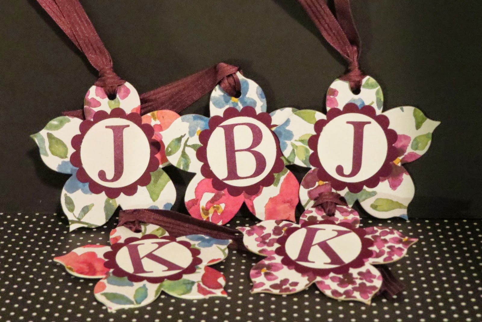 Punch a hole in the top of the tag with the 1/4″ handheld circle punch. Add Blackberry Bliss ribbon to the tag.