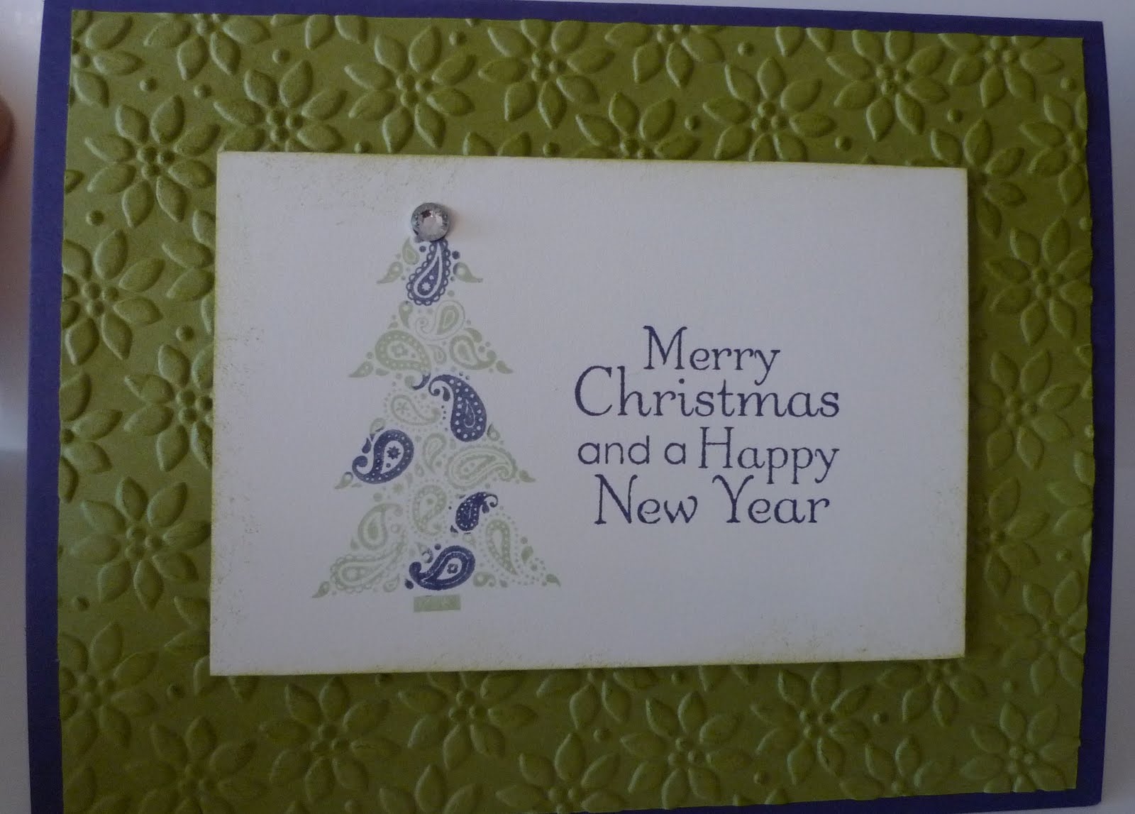 I made this Christmas card using the Paisley Prints stamp set item #121121$15.95 clear mount. I love how easy it is to ink up different parts of the image with different colors of Stampin’ Write markers. I used Pear Pizzazz and Concord Crush on the Christmas tree.