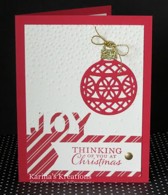 This card uses the Decorative Ornament Thinlit die and the Little Letters Thinlit dies.