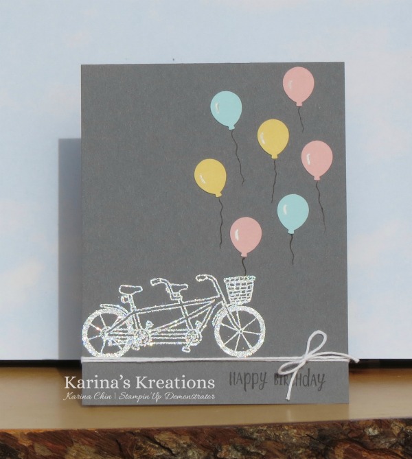 I stamped the bike with Versamark ink and embossed it with a mixture of Whisper White embossing powder and Dazzling Diamonds Glitter.