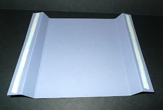 On the back of the Wisteria Wonder card stock, place 2 pieces of sticky strip on the outside edges(1/2″ and 5″ score line).