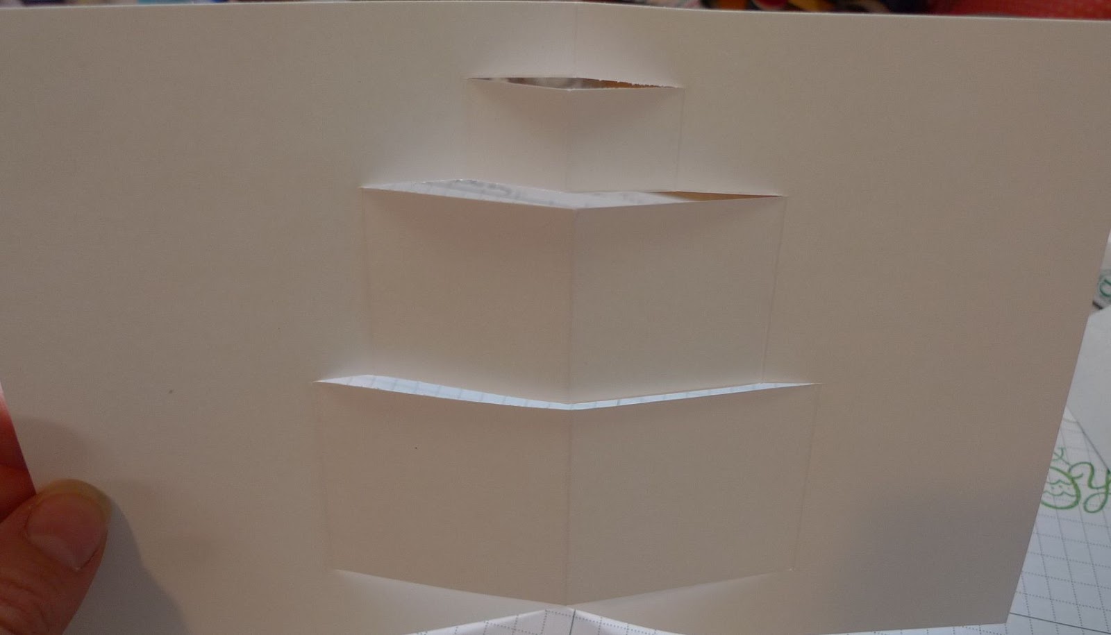 9. Decorate the inside with three pieces of Designer Series Paper. The sizes are 3/4″ x 1-3/4″, 1-1/2″ x 3″ and 1-3/4″ x 4″.