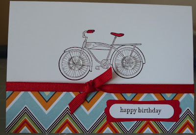 The stamp set is called Pedaling Past from the Summer Mini catalog. I stamped it in Early Espresso ink on the note card.