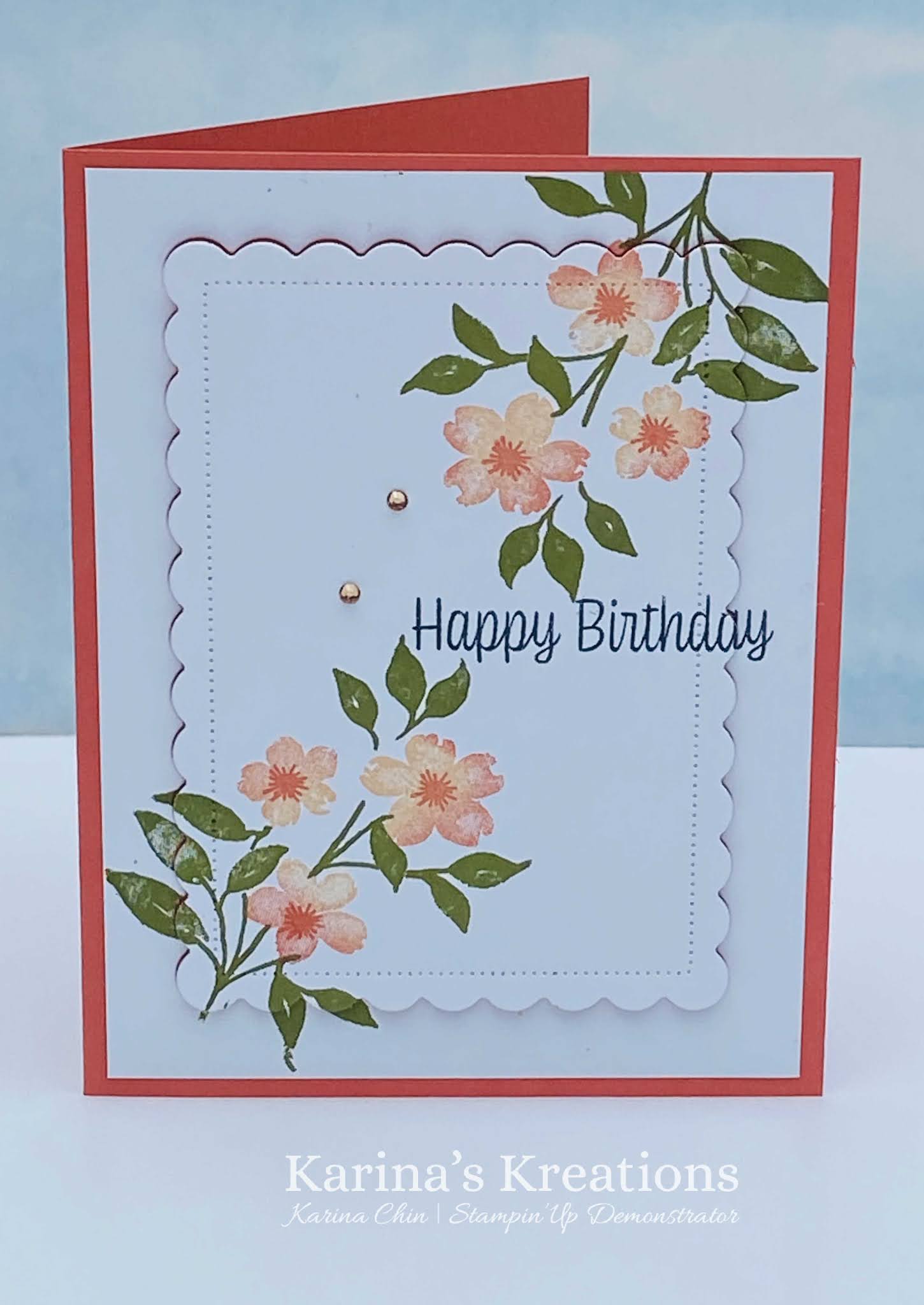 Even though the suite is peach themed, you can use the floral images in the stamp set to create beautiful cards.