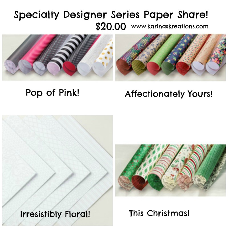 I’m a Canadian demonstrator and I’m running ribbon and paper shares. If you need them mailed out add $5.00 for shipping to your order. Email me at kchin2@telus.net.