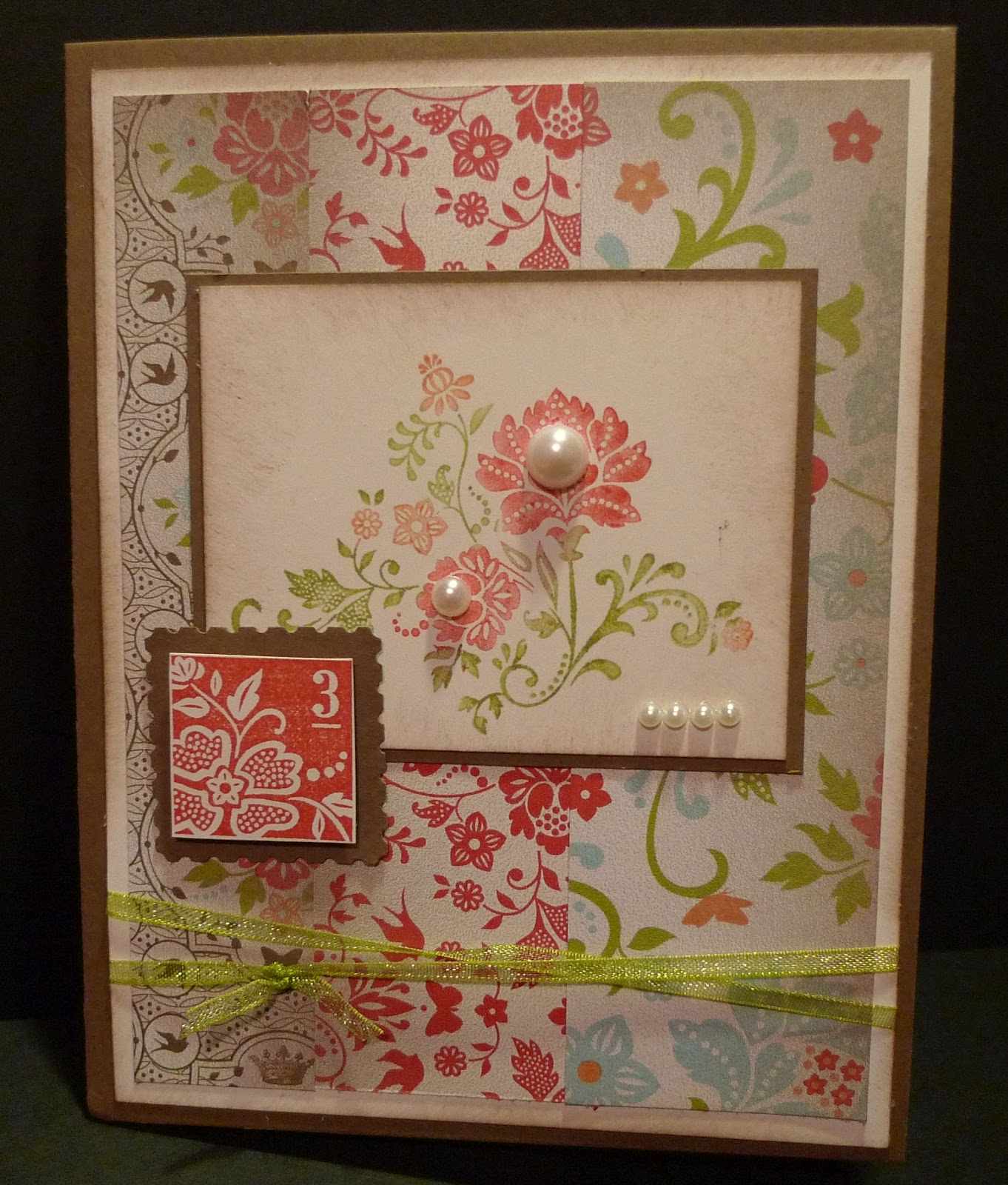 I wanted to use my favorite stamp set Fresh Vintage with the Matching Everyday Enchantment Designer Series Paper and Everyday Enchantment Ribbon & Brad package.