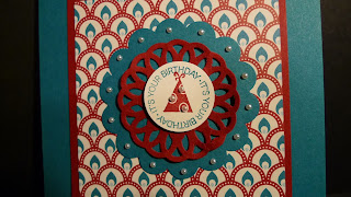 I used the Delicate Doilies Sizzlits L Die #126999, 2-3/8″ Scallop Circle punch #118874 and the 1″ circle punch #119868 on the card.