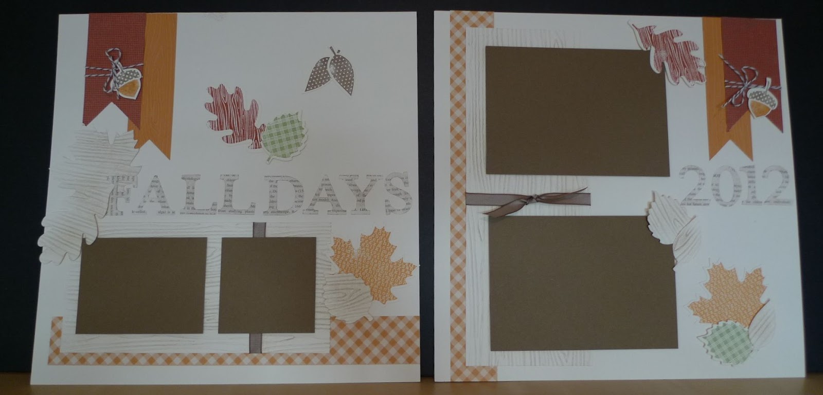 I used The Wonderfall stamp set #128087 and the Autumn Accents Bigz Die #127812 for most of the elements on this page. I also used the Woodgrain Textured Impressions Embossing Folder #127821.
