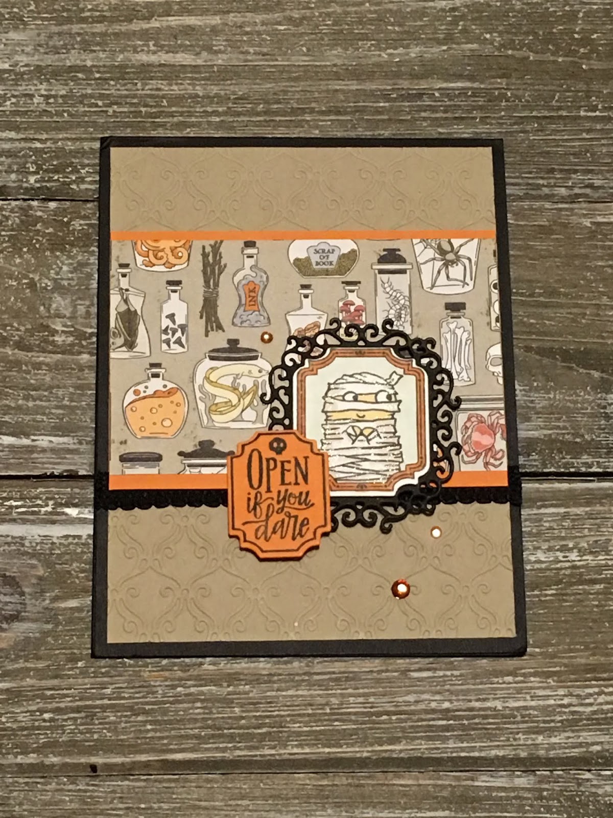 She used the Spooktacular Bash Halloween stamp set and Ornate Frames Dies. They can be purchased in a bundle saving you 10% #153040.
