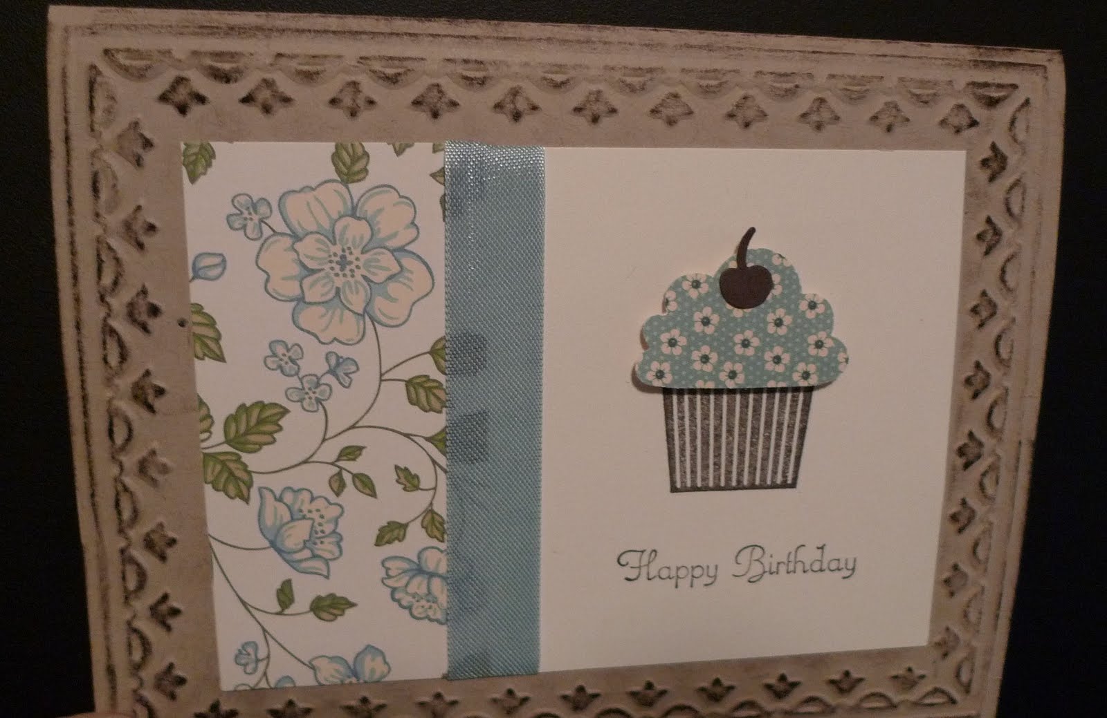 This card combines the beautiful Springtime Vintage Designer Series Paper and the Create a Cupcake stamp set. The original design was by Trish Miles. I just changed the stamp set.