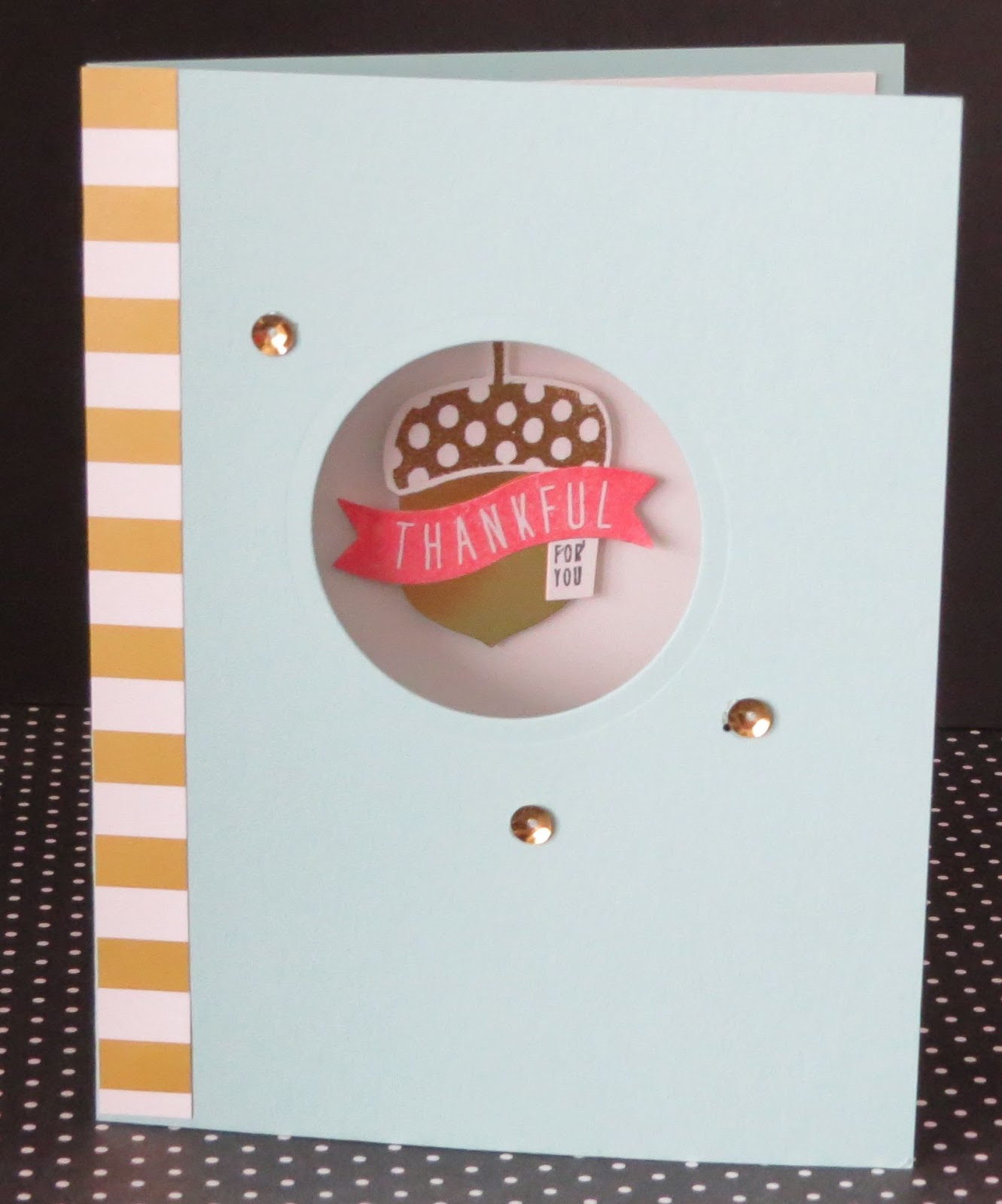 The Acorny stamp set is one of my favorites in the holiday mini catalog.  I love all the different cards you can make with it. Plus, it has a coordinating punch. Who doesn’t love that?