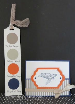 This card is made with Tip Top Taupe, Sahara Sand, Night of Navy and Tangerine Tango colors.