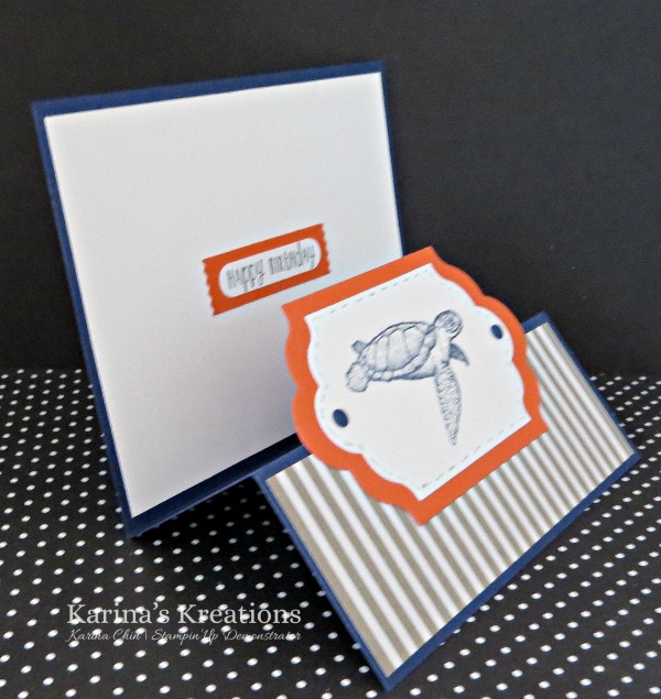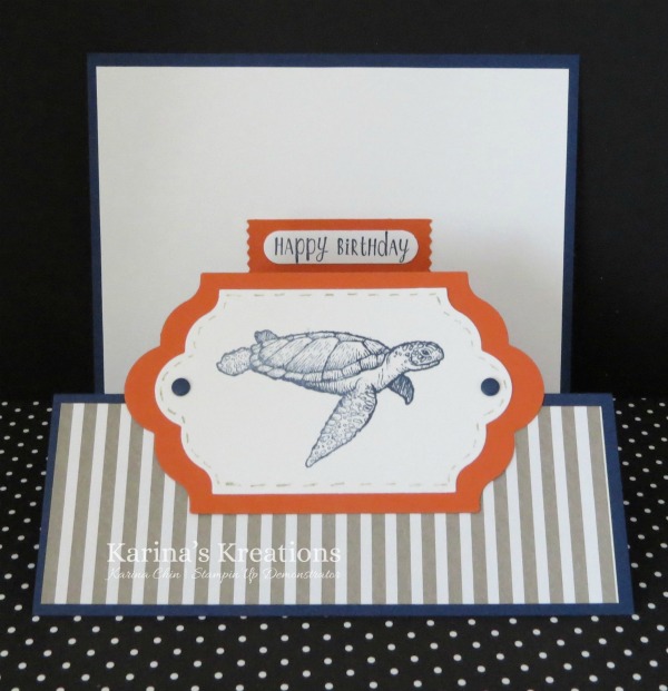 I made a z-fold card with From Land to Sea and Happy Happenings stamp sets.