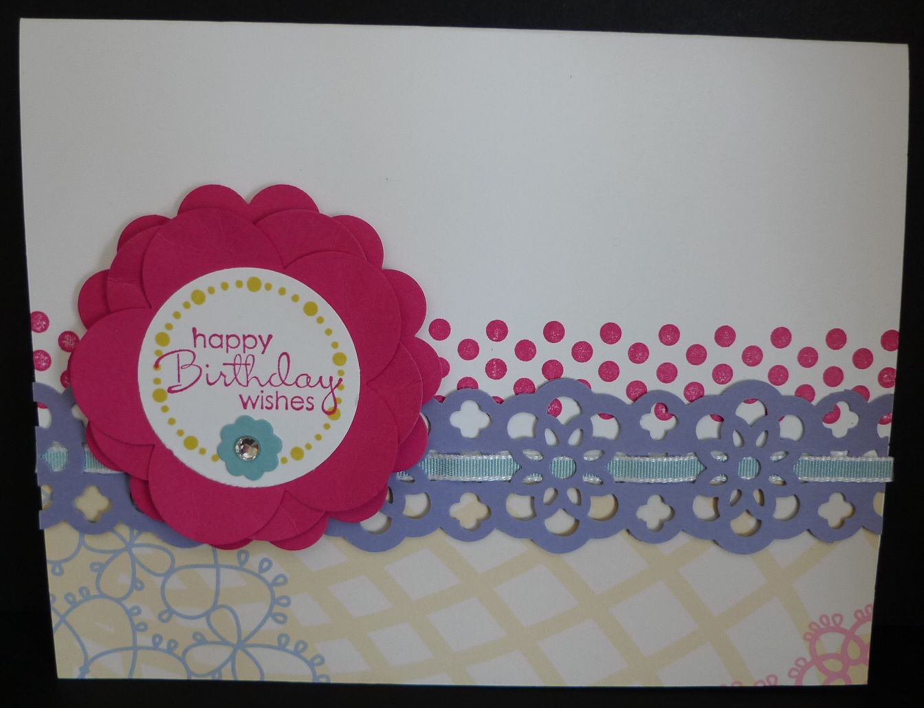 Punches: 2-3/8″ Scallop Circle Punch, Fancy Flower Punch, 1- 3/8″ Circle Punch, Itty Bitty Shapes Punch Pack, Lace Ribbon Border Punch