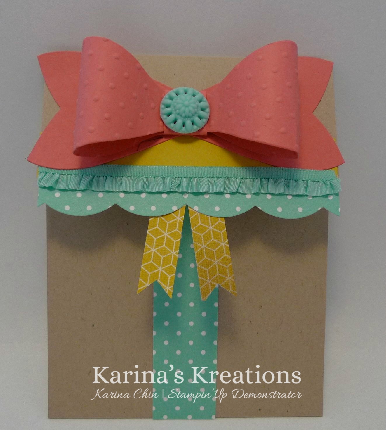 I love this card because it has a pop up surprise when you open the card and it uses the new Gift Bow Bigz L Die. When I first saw it in the mini catty I thought I don’t need that!!! I was wrong!!! This is one of my new favorite toys!!! Every Christmas gift will have a hand made bow this year!!! It’s so quick and easy!!!