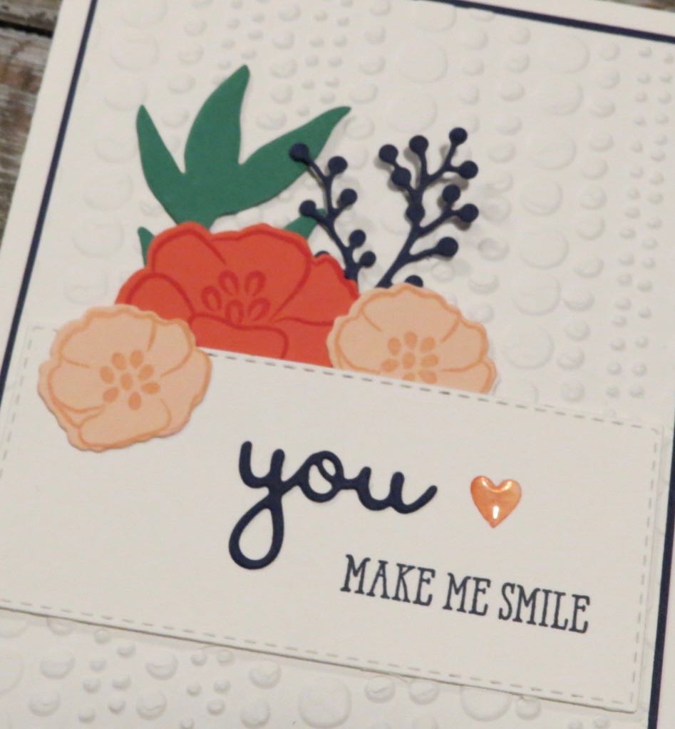 This card also uses the new Rectangle framelits, the Well Said Product bundle, the new Dot to Dot Embossing Folder and Heart Epoxy Droplets.
