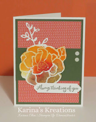 What do you think? I love the die cut piece for the sentiment and the die cut leaves behind the flower. The die cuts are part of the Petals and More Thinlit Dies.