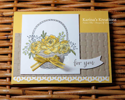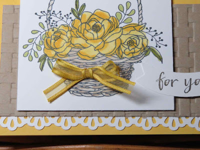 I made this cute card with it. The flowers were stamped with Daffodil Delight, Crumb Cake and Old Olive Stampin Blends.