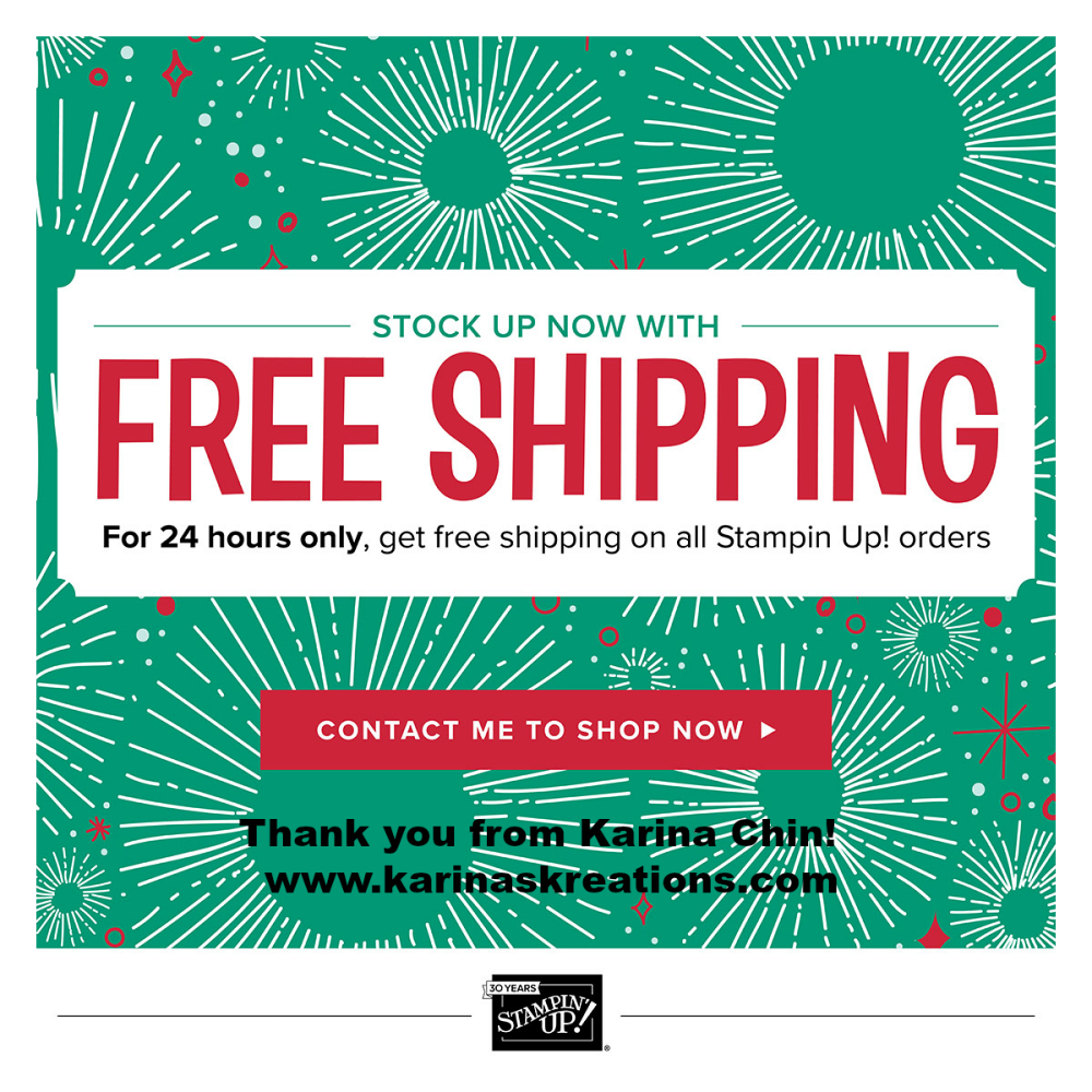 Stampin’Up is having a ONE DAY FREE SHIPPING SALE on all Stampin’Up products for Cyber Monday.