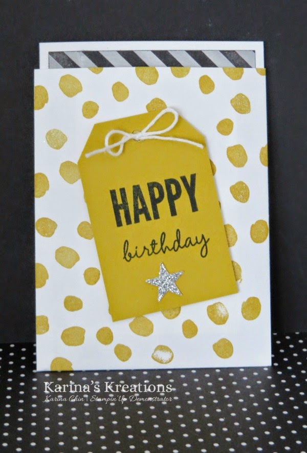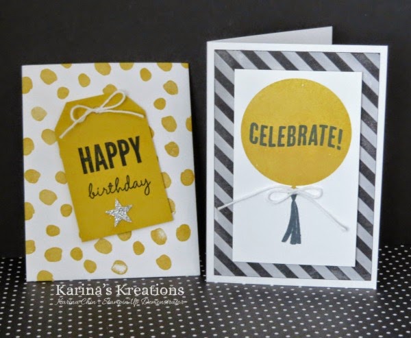 The balloon from the Celebrate today stamp set was stamped with Hello Honey ink. The greeting as stamped with Black Memento ink.