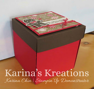I used 12″ x 12″ Real Red card stock for the box and 6-1/8″ x 6-1/8″ Early Espresso card stock scored at 1″ on all sides for the lid.