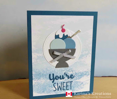 I used the Cool Treats stamp set and Frozen Treats Framelits dies on the rest of the card. You can buy these as a bundle for $61.00 #145181 and then get the coordinating Tasty Treats designer series paper for FREE as a sale-a-bration item.