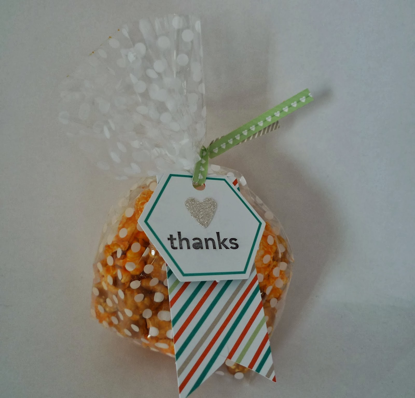 I used the Sale-a-bration Twisty Treats Kit #133513 to package up this yummy cheddar carmel popcorn.