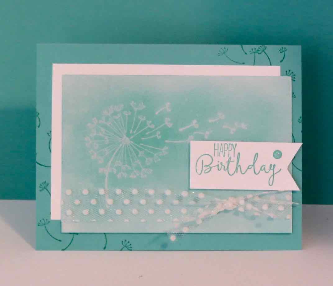 I love the dandelion stamp set because I can use it for a variety of techniques. This technique is called ghosting.