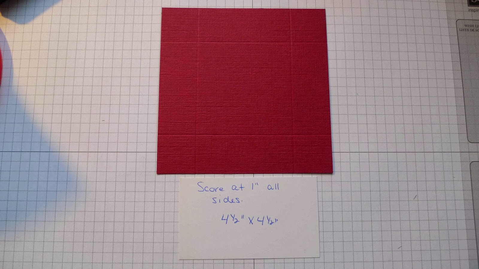 1. Cut a piece of 4-1/2″ x 4-1/2″ Textured Cherry Cobbler card stock #132129.