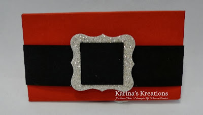 The dimensions for the gift card holder are on the envelope punch board. Start with a piece of 5″ x 5″ Real Red card stock and follow the instructions on the punch board.