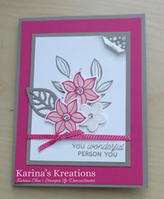 Stampin’Up has a Falling Flowers stamp set and matching May Flowers Thinlit Dies that you can buy as a bundle #142329. You save 10% when you buy the bundle.