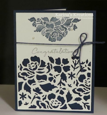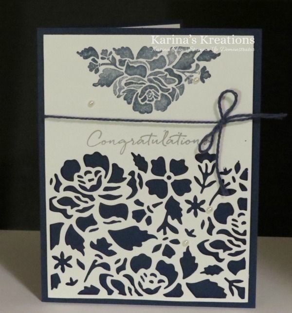 We made this cute card at my class this week using the Floral Phrases stamp set and coordinating Detailed Floral Thinlits.  You can buy these items in a bundle and get a special price #142355 #56.50.