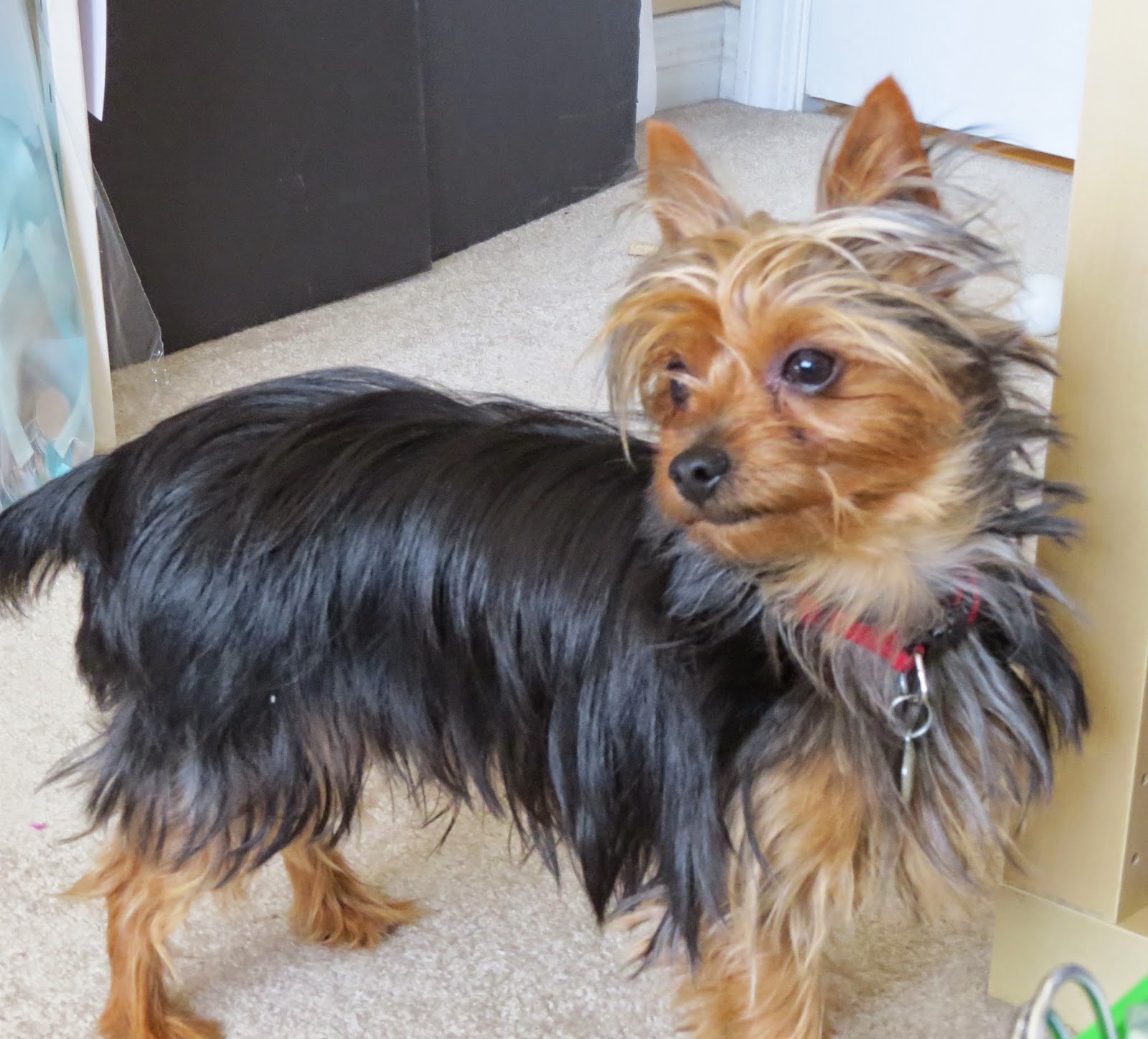 This is Tugger and he’s a Silkie Yorkie.  I was lucky to puppy sit him. I just had to make sure I didn’t step on him and that he didn’t eat my paper! LOL!