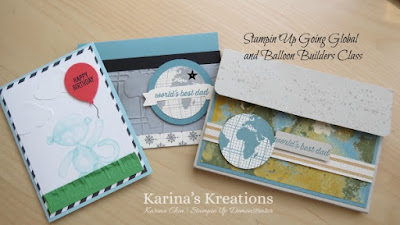 Stampin’Up Going Global Kid’s Class!Miscellaneous / Leave a Comment Hi Stamping Friends, I’m holding a kid’s stamping class today and they will be making a Father’s Day mini Album and two cards. The stamp sets are Going Global and Balloon Builders. Aren’t these projects great? Happy Stamping, Karina