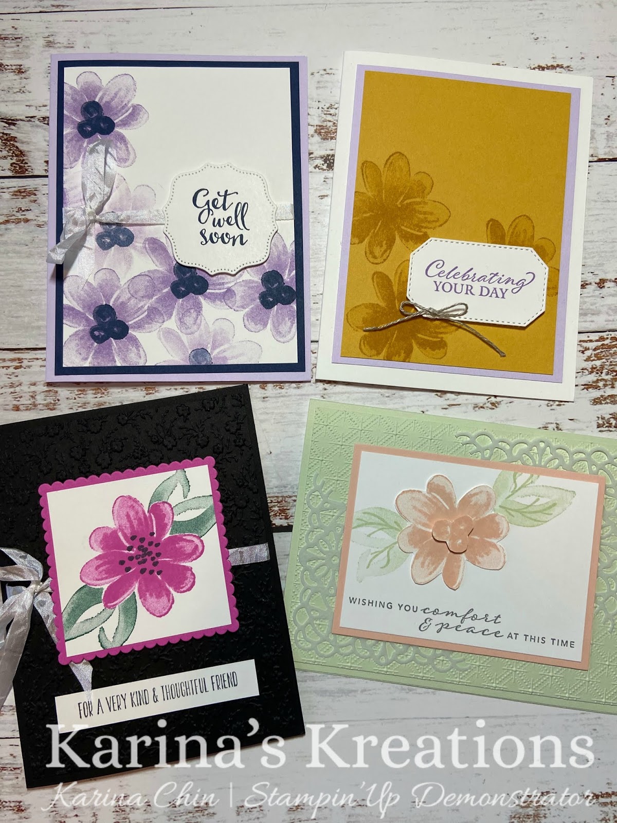 When you use up the supplies, you can make these 4 alternative samples. We made these cards at our Krafting Crew group stamp night.