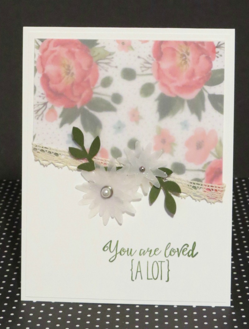The designer series paper is Birthday Bouquet covered with Vellum card stock.