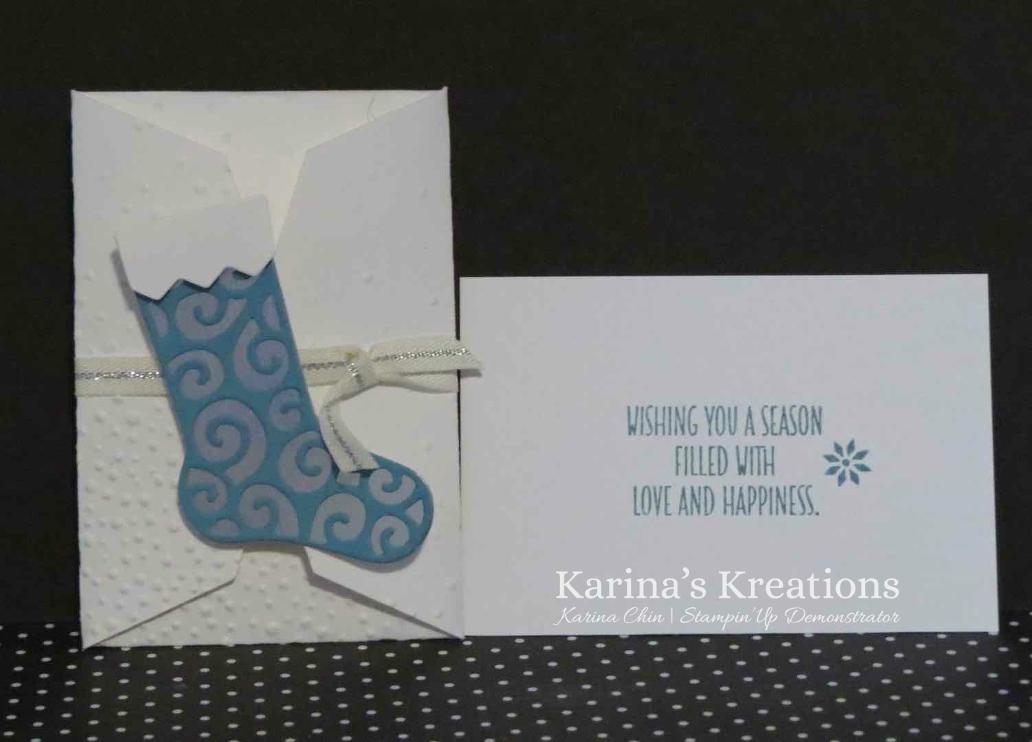 I used the Hang Your Stocking stamp set and matching framelits. When you buy these as a bundle, you save 10%. The bundle number is 143512. This is set is retiring so get it while you can!