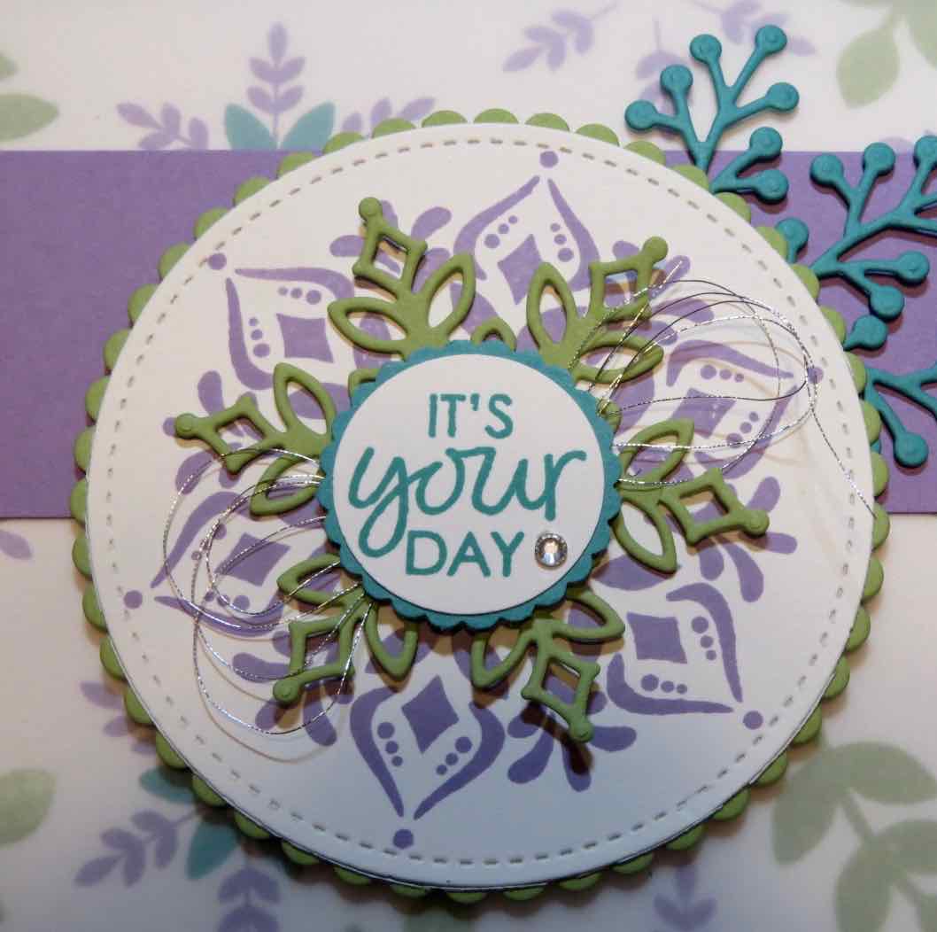 I used the Stitched Shapes framelit dies and Layering Circle Dies to highlight my large flower.