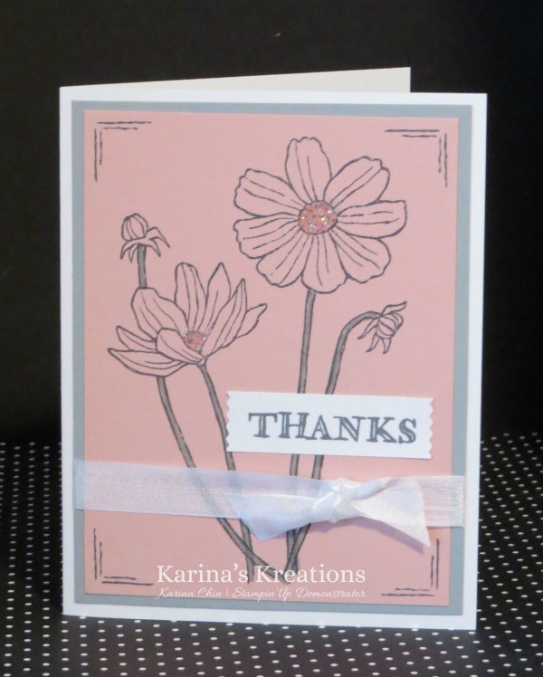 I colored the center of the flowers with a Blushing Bride Stampin’ Write marker and then added some Dazzling Diamonds glitter with a 2-way glue pen.