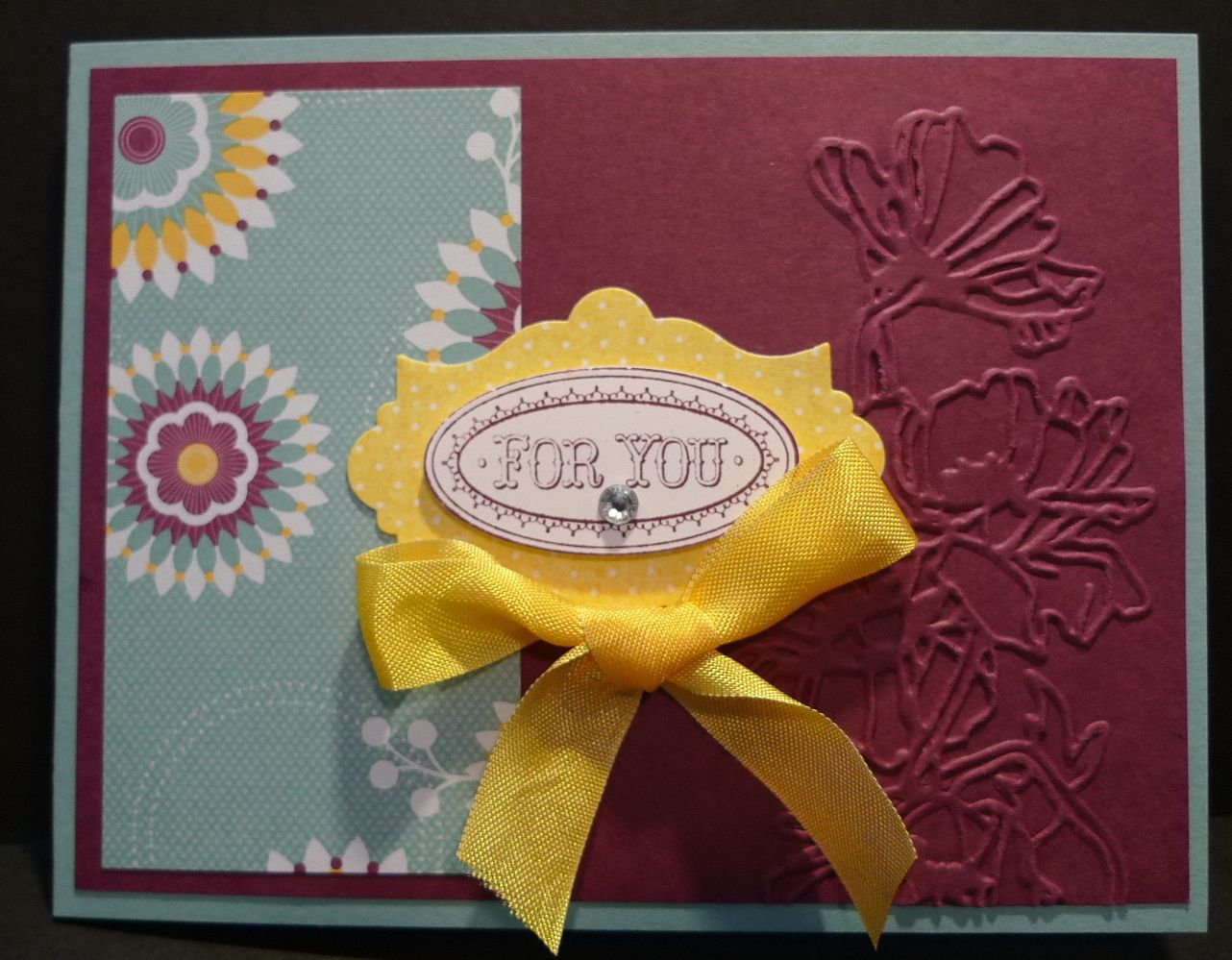 I used the Flower Garden Textured Impressions Embossing Folder #123113 $9.95 on the Rich Razzleberry layer.