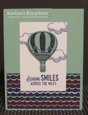 I used the new Lift me Up stamp set and Up and Away Thinlit Dies as well as new Carried Away Sale-a-bration designer series paper .