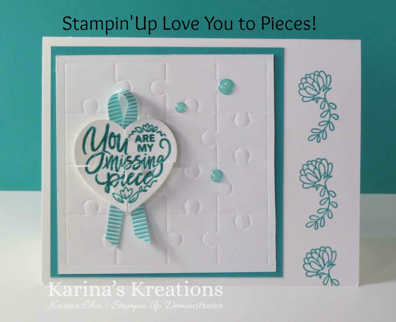 This is my swap card for the incentive trip. I’m using the Love You to Pieces stamp set with coordinating Puzzle Pieces Thinlits Dies.
