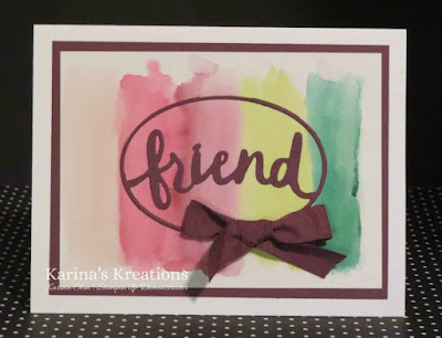 I combined the Lovely Words Thinlits dies with the Layering Oval Framelits to cut out the word friend.