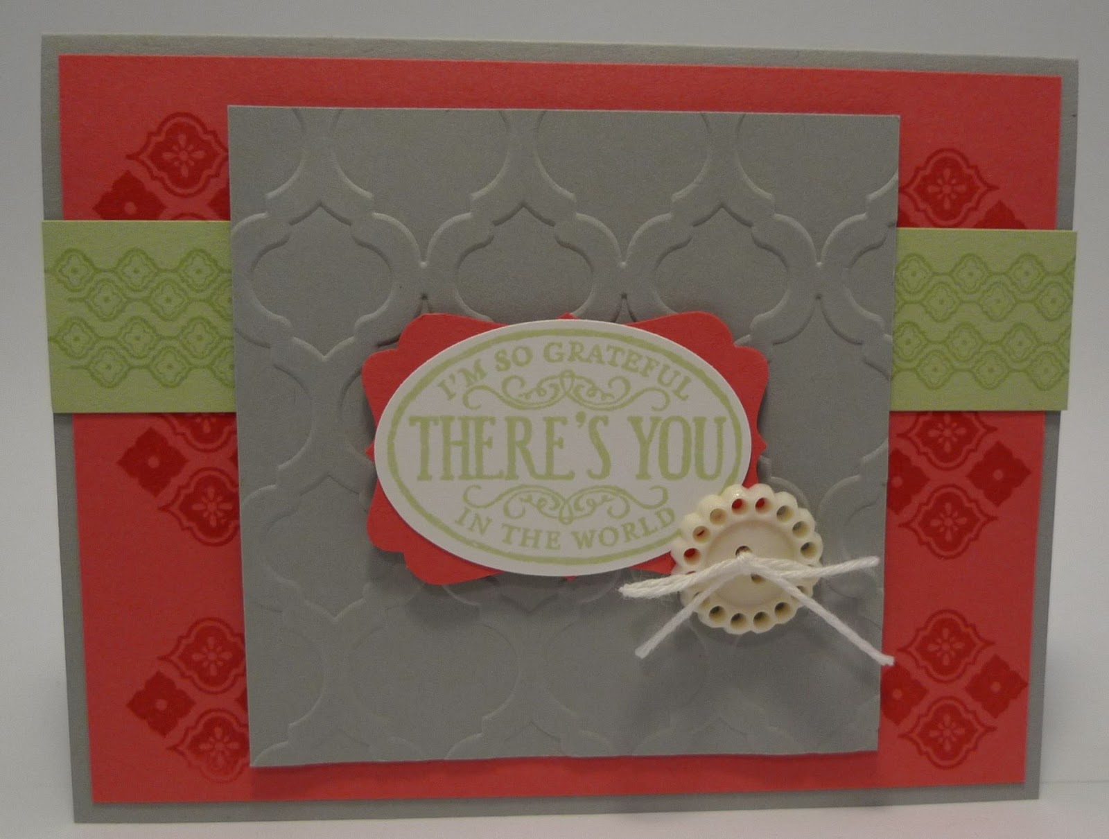 My card stock colors are Strawberry Slush, Crisp Cantaloupe and Smoky Slate.