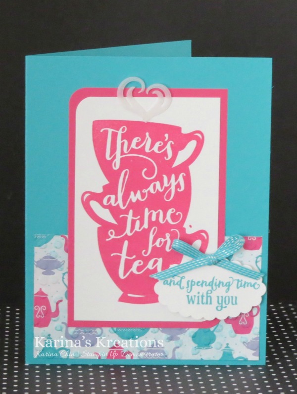I was designing a card for a private class and came up with this design using the Nice Cuppa stamp set.  This set is great because it comes in a bundle for $48.25.  Order the paper and coordinating ribbon and get a sale-a-bration item for Free.