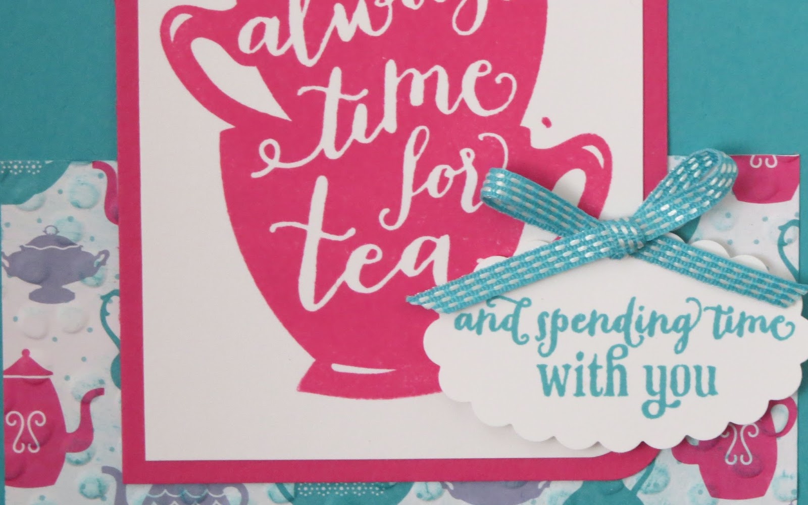 I embossed the Have a Cuppa Designer Paper with the Decorative Dots embossing folder and sponged it with Bermuda Bay ink.